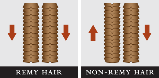 Non Remy hair is human hair that is collected from multiple sources. Non Remy is sold in its raw state and also as a finished product. In raw form the cuticles are intact but they flow in opposite directions. This can cause tangling and quality issues if not processed properly. Finished Non Remy selections have had the cuticles descaled and all hairs are similar in length giving each piece a thick luscious appearance.